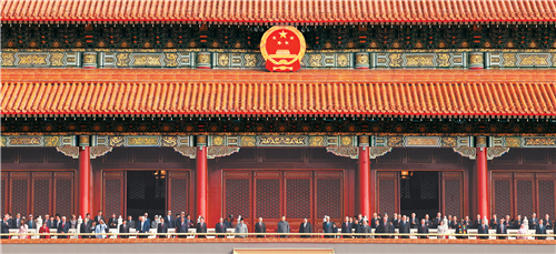 大会开始前,习近平和夫人彭丽媛在端门外广场迎接出席大会的外方代表团团长及其配偶,并同他们合影留念。