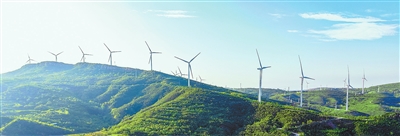 9月1日,洛阳市宜阳县樊村镇,风电机组在蓝天白云映衬下,成为一道亮丽的风景线。 李卫超 田义伟 摄