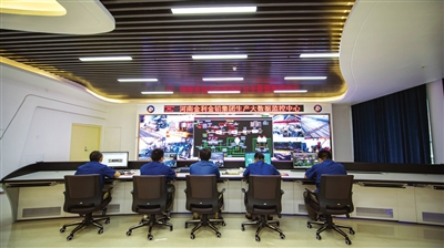 河南金利金铅集团有限公司大数据监控中心,工作人员正在远程监测各生产基地运行数据。