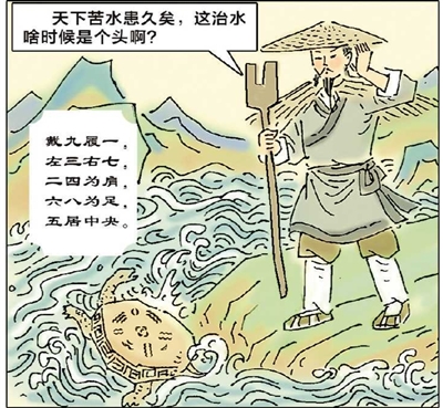 一日,忙于治水的大禹坐在河边哀叹,只见河面突然起雾,一只神龟从洛水慢悠悠浮出,背上的数字排列堪比二维码。