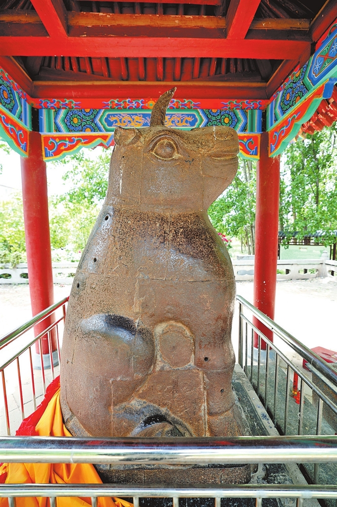 镇河铁犀坐落于开封市龙亭区。明宣德五年(1430年),河南巡抚于谦上任后,在既有堤防设施的基础上,动员沿岸居民参与以工代赈,对开封的堤防进行了加固,并铸造了镇河铁犀。镇河铁犀坐南向北,面河而踞,通高2.04米,围长2.66米。浑身铁黑,独角朝天,目光炯炯,雄健魁梧,其背镌刻于谦所书《镇河铁犀铭》。