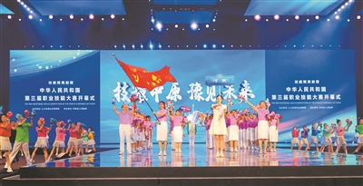 “海纳天下才,匠心筑未来!”“技能成才,技能强国!”……9月19日晚,郑州航空港区中原国际会展中心,第三届全国技能大赛开幕式举行,来自全国的35个代表团依次入场,在响亮的口号中,他们精神饱满、步伐铿锵,展现劳动光荣、技能宝贵、创造伟大的时代风尚。