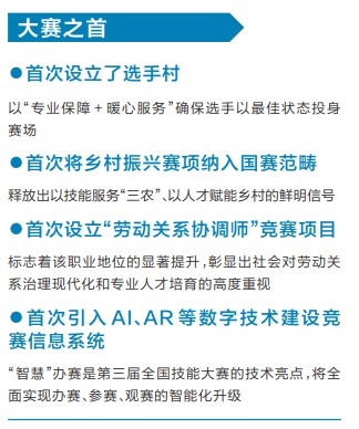 9月19日晚,第三届全国技能大赛开幕式在郑州航空港区举行。本届大赛,比赛项目涵盖30多个行业,智能制造、数字技术、新能源等赛项占比超过50%;国赛精选项目参赛选手中,一线职工占半壁江山;世赛选拔项目中,00后成主力……这是技艺的切磋、才华的展示,是一个民族匠心传承与时代创新的交响,更是观察中国力量、中国梦想的一扇窗口。