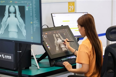 9月21日,参赛选手在进行3D数字游戏艺术项目的比赛。本报记者 王铮 摄