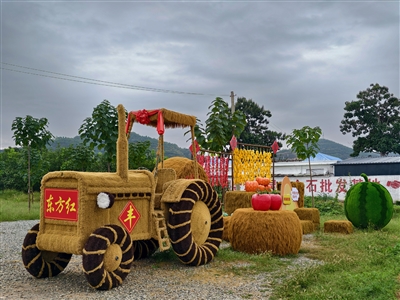 为庆祝“中国农民丰收节”,灵宝市尹庄镇唐窑村在道路一侧精心布置农耕艺术展台。郑军胜 摄