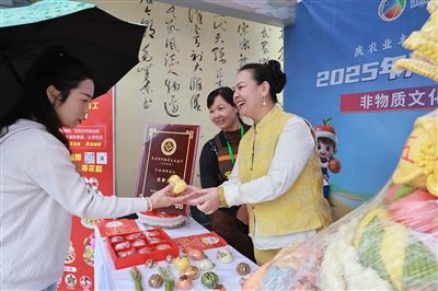 9月23日,许昌市2025年中国农民丰收节在禹州市开幕。图为梁北镇商户在展示粗粮制品。吕超峰 吕科 摄