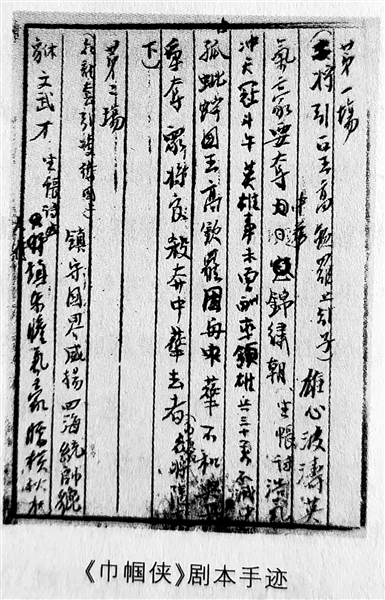 樊粹庭创作剧目《巾帼侠》剧本手迹。