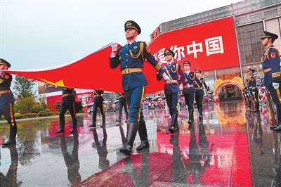 10月1日上午,郑州市二七广场举行隆重的国庆节升国旗仪式,上千市民冒雨前来观看,感受这段专属于中国人的深情告白。 河南日报社全媒体记者 张琮 摄