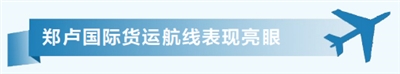 今年前三季度,我省持续拓展全球货运网络,新开及加密至阿联酋阿布扎比、丹麦比隆、沙特利雅得、挪威奥斯陆、西班牙马德里、英国诺丁汉等十余条全货机航线,成为郑州航空口岸新的增长点。“这些新开及加密的航线,在10000架次出入境货运航班中占比超10%,显示出强劲的势头。”张怡说。