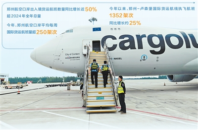 “通过数据可以看出,郑州-卢森堡国际货运航线表现依然稳定且抢眼。”郑州边检站站长张怡说,今年以来,该航线执飞航班1352架次,同比增长约25%。开通11年来,郑卢“空中丝路”已成为我省推进高水平对外开放的标志性名片。