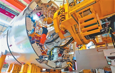 10月7日,国庆中秋假期,中铁装备集团郑州经开区盾构总装车间内生产繁忙,一台台大型盾构机正加紧组装。本报记者 聂冬晗 摄