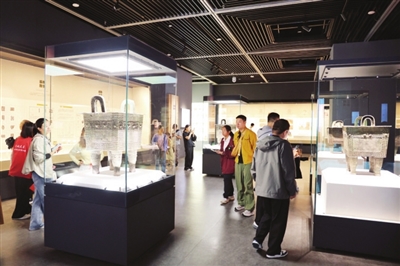 国庆中秋假期,走进郑州商都遗址博物院的游客络绎不绝,只为亲眼见证“四鼎重逢”的盛况。