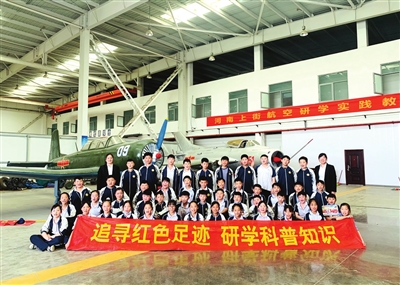 青少年在郑州上街机场开展航空科普研学活动。