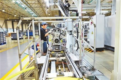 瑞庆汽车发动机技术有限公司生产车间内,第五代混合动力发动机整机即将下线。 蒋鑫 摄