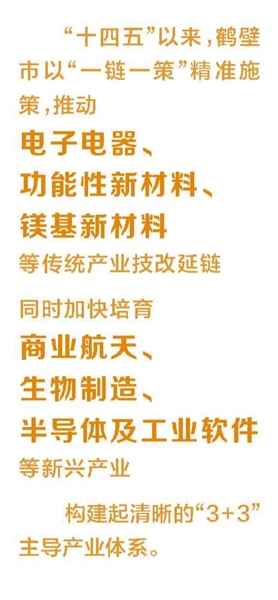 “十四五”以来,鹤壁市以“一链一策”精准施策,推动电子电器、功能性新材料、镁基新材料等传统产业向高端化、智能化、绿色化转型。该市创新实施“企业+资本+政府+产业链”招商机制,为规上企业提供免费“一对一”技改指导,培育出一批细分领域的“隐形冠军”。