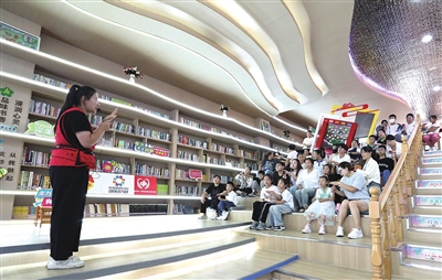 馨苑二区淇河书屋内,老师与孩子们正在积极互动,现场气氛轻松活跃。