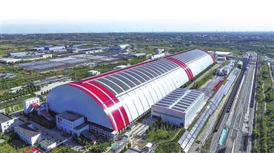 河南煤炭储配交易中心单体封闭式储煤仓,依托火车、汽车、管带运输机发展多式联运。管俊卿 摄