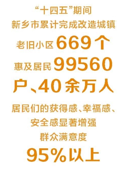 据统计,“十四五”期间,新乡市累计完成改造城镇老旧小区669个,惠及居民99560户、40余万人。居民们的获得感、幸福感、安全感显著增强,群众满意度95%以上。