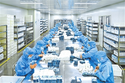 位于南阳高新区的河南爱视力药业有限公司,拥有十万级GMP自动化无菌生产线50余条,涉及护眼产品、个护家清、艾灸用品、功能食品等六个大健康品类的产品研发、生产、销售业务,已成为多家上市公司护眼产品制定供应商,客户群体遍布全国。图为公司员工正在加紧生产订单产品。 张峰 摄