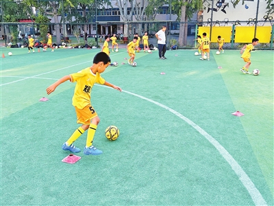 在郑州市金水区金桥学校,兼具竞技性和趣味性的足球游戏颇受低年级学生的欢迎。