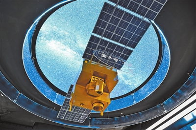 在位于安徽省合肥市的中电信量子信息科技集团有限公司科技体验馆内拍摄的“墨子号”量子卫星模型。 新华社记者 张铖 摄