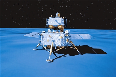 在北京航天飞行控制中心屏幕上拍摄的嫦娥六号着陆器和上升器组合体着陆月背的模拟动画画面。新华社记者 金立旺 摄