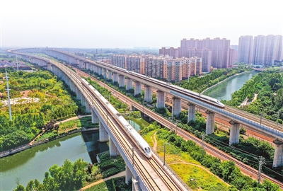 郑徐高铁上的列车与商合杭高铁上的列车驶入商丘。 本版图片均为商丘市委宣传部供图