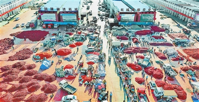 “柘城县辣椒年交易量100多万吨,这个市场就占70%。近年来,柘城县以辣椒大市场为龙头,以16个乡镇交易集散地为支撑,以300个村级交易网点为基础,形成了一张连接千家万户、通达全国各地的市场交易网络,年交易额超过200亿元。”柘城县辣椒产业发展中心主任刘超锋告诉记者,目前,柘城县是全国重要的辣椒交易集散基地、河南省辣椒出口第一县,形成了“全国辣椒进柘城、柘城辣椒卖全球”的交易格局。