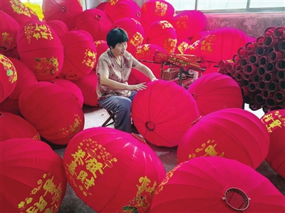 中国民间文化艺术之乡——夏邑县火店镇文化产业园内工人在加工宫灯,供应新春市场。