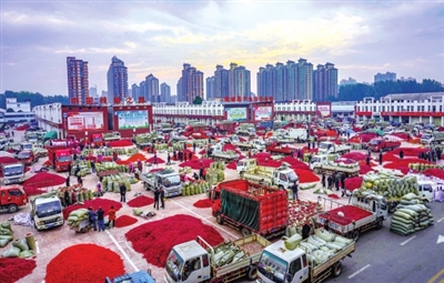 “全国辣椒进柘城,柘城辣椒卖全球!”走进柘城辣椒大市场,电子交易大厅的屏幕上实时滚动着价格数据,这里作为豫鲁苏皖四省最大干辣椒交易市场、农业农村部大数据监测网点,年交易量达100多万吨、交易额200亿元,产品远销30多个省(市、自治区)及20多个国家和地区。从“中国三樱椒之乡”到“中国辣椒之都”,柘城辣椒已成为乡村振兴的“红色引擎”。