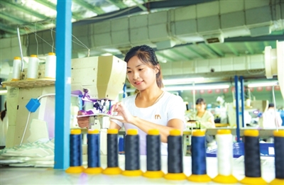 制衣车间,技术员正在认真操作。 徐硕 摄