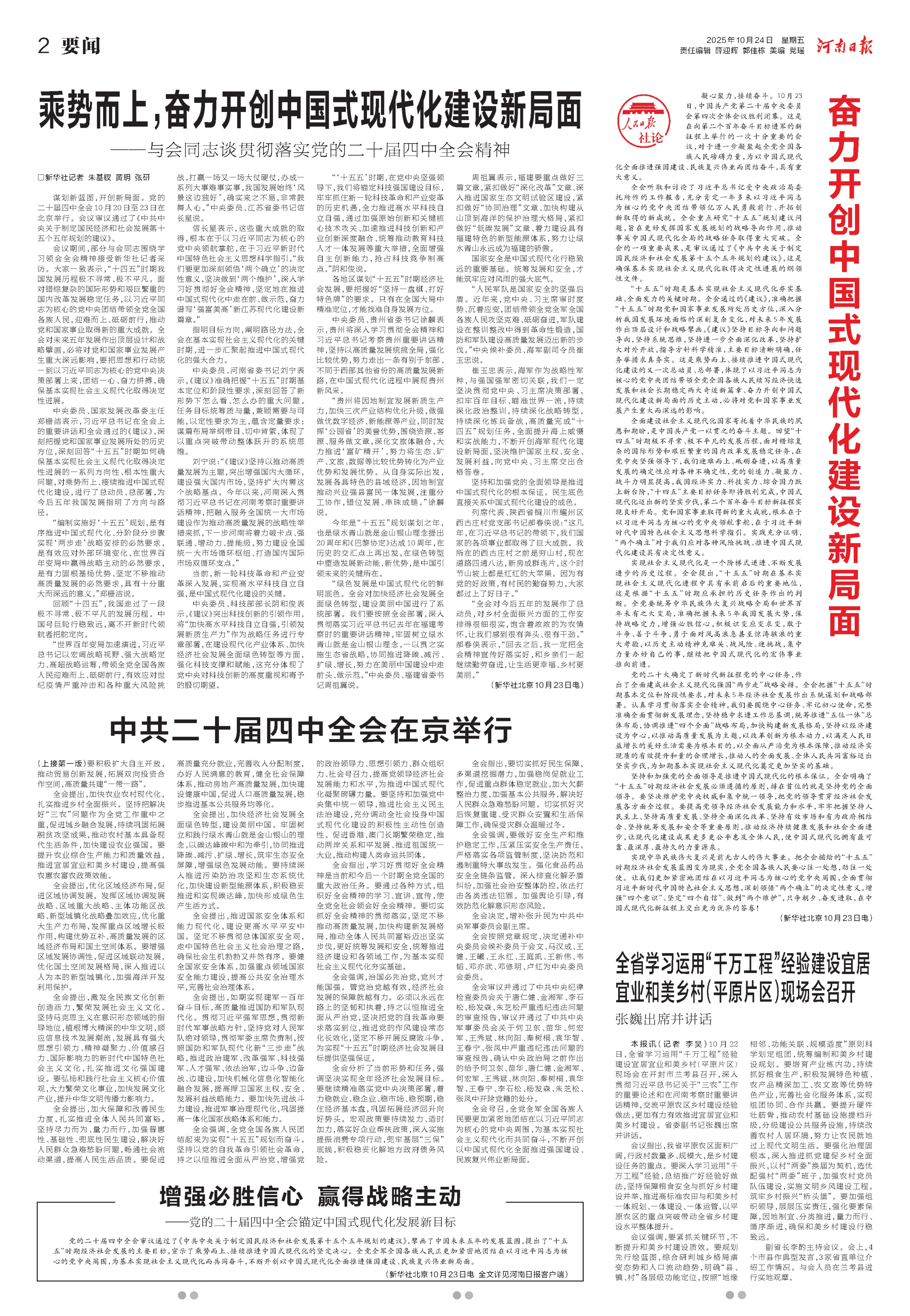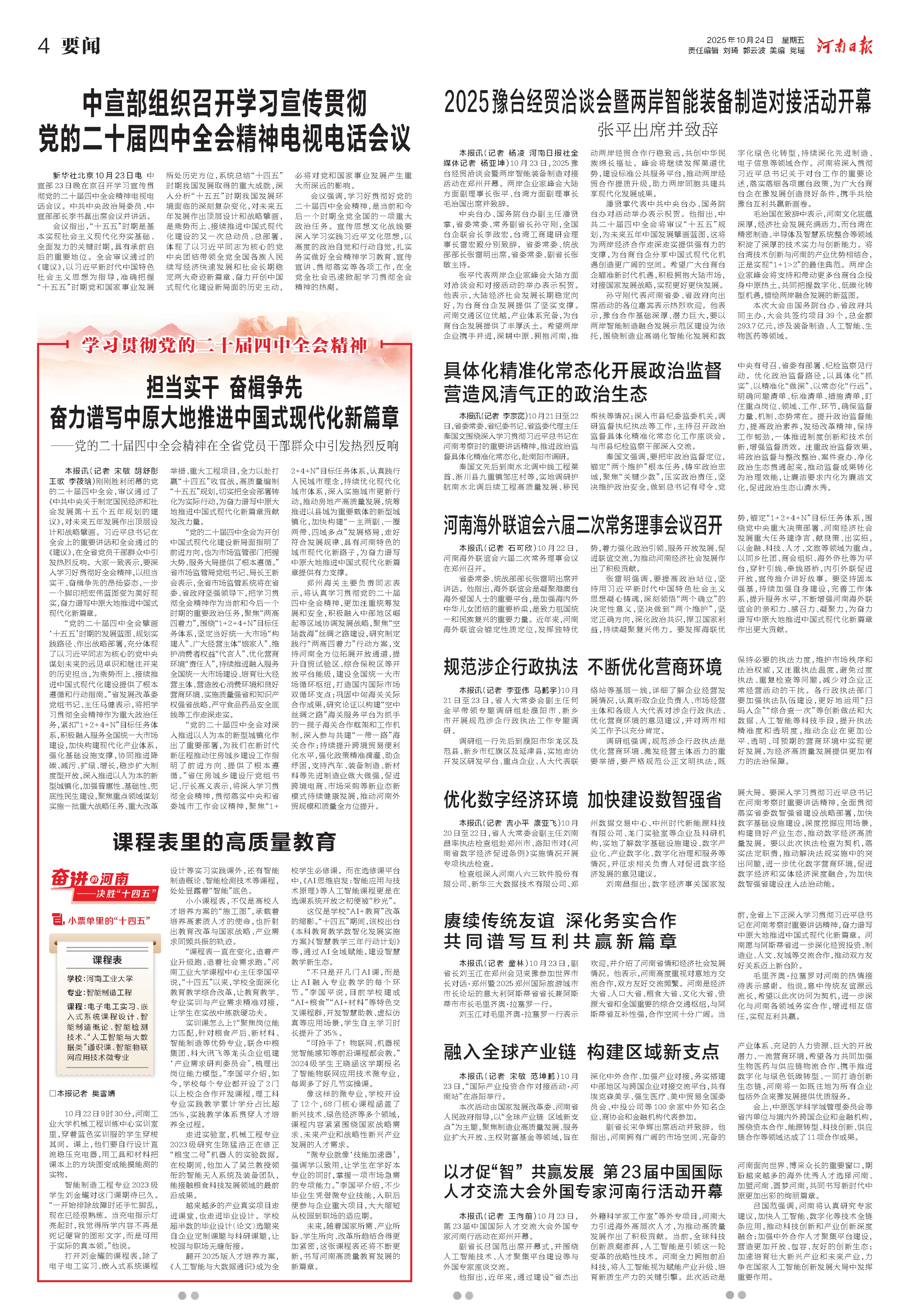 担当实干 奋楫争先 奋力谱写中原大地推进中国式现代化新篇章(学习贯彻党的二十届四中全会精神)