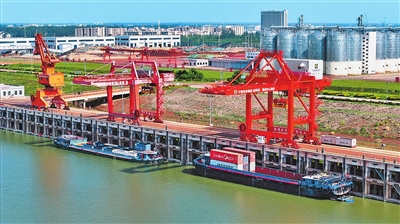 坐拥淮河主航道的信阳港·淮滨中心港,是河南最大综合性单体内河港口,也是河南通江达海距离最近、最快捷的港口。自2022年1月通航以来,已开通10条集装箱航线,直抵合肥、连云港、淮安、嘉兴乍浦等长三角港口。