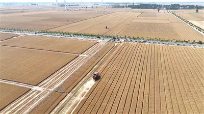 站在汤阴县古贤镇高标准农田示范区极目远眺,田埂间,新修的灌溉沟渠如银带蜿蜒;田野里,农机不时穿梭作业。一幅“田成方、渠相连、路相通”的现代农业画卷,正鲜活铺展。就在这片充满生机的土地上,汤阴县以稳定的粮食生产、扎实的高标准农田建设,为筑牢中原粮仓筑起了坚实的“汤阴防线”。