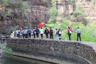 在宽仅1.2米的红旗渠岸——右侧悬崖、左侧渠水,师生唱着红歌、讲述修渠故事,徒步24公里沿总干渠溯流而上。该校每年开展的“重走红旗渠”活动,已成为一堂独具特色的“行走的思政课”,让师生在实地体验中感悟精神、锤炼品格。