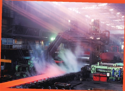 ④被誉为中国钢板工业“功勋轧机”的舞钢4.2米宽厚板轧机在轧制钢板。任凯 摄