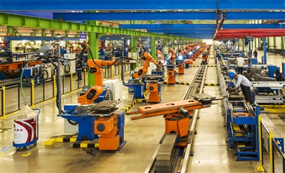 位于三门峡市的河南骏通车辆有限公司零部件智能焊接车间,生产线正有序运转。孙猛 摄