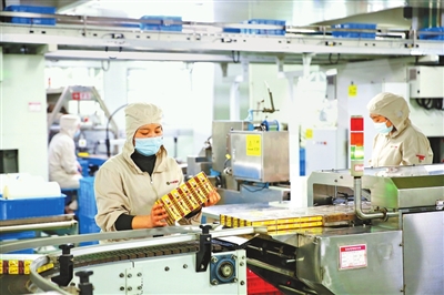 走进今麦郎(遂平)食品产业园方便面生产车间,自动化生产线飞速运转,经过和面、熟化、压延、拉伸、油炸、风冷等工序,一块块色泽金黄、麦香四溢的方便面饼在生产线上迅速成型。“今麦郎选择布局遂平,正是看中了遂平县发展食品加工主导产业的清晰定位、丰富资源、优势集群,以及完备的基础设施条件。”今麦郎(遂平)食品产业园负责人展坤鹏说。