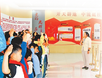 学生参观新蔡县练村镇大庄村党员政治生活馆。