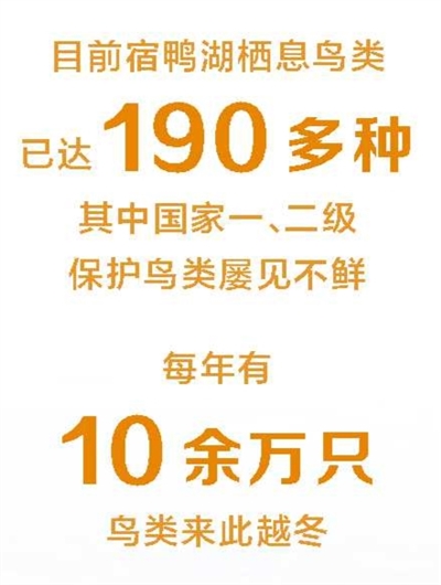 “现在的宿鸭湖和几年前大不相同了,水质变清,鸟的种类也越来越多,几乎每年都能发现新鸟种。”说起这些变化,祖祖辈辈都生活在湖边的村民李劲松满面幸福。他说,随着生态环境持续改善,每逢周末和节假日,自家经营的农家乐游客络绎不绝,全家人的生活越过越红火。