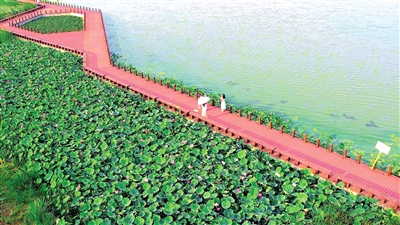 新蔡县北湖公园东园游客正在拍照赏荷。本版图片均由新蔡县委宣传部提供