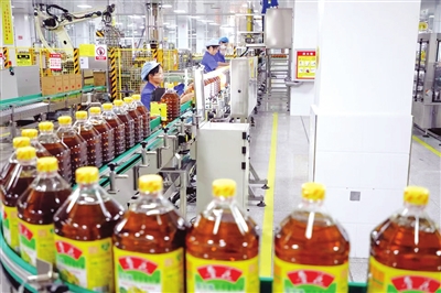 在正阳鲁花浓香花生油有限公司车间,每小时灌装6000瓶的高速生产线正全速运转。从吹瓶、灌装到贴标、入库,全流程自动化运行。公司年消化本地花生35万吨以上,年产花生油15万吨,产值约15亿元。同时,总投资3亿元的吹塑罐装包装项目也已落地,成为鲁花产业链延伸的关键一环。