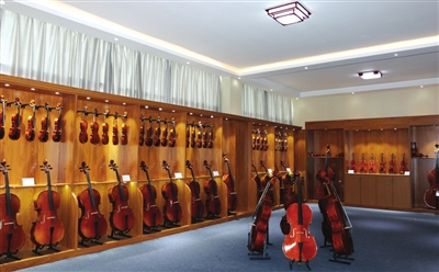 展厅里,款式各异的提琴琳琅满目。段阳东 摄。