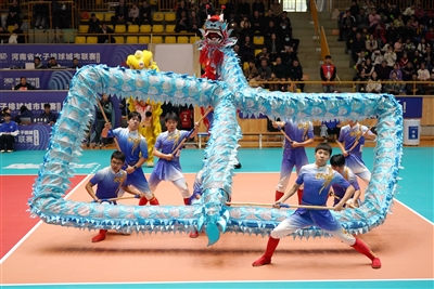 2025年河南省女子排球城市联赛平顶山队主场的龙狮表演。 本版图片除供图外均为本报记者 黄晖 摄
