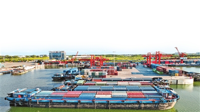 金秋十月,沙颍河畔的周口中心港范营作业区一派繁忙,吊机起落,船舶穿梭。随着一声悠长的汽笛,满载集装箱的货轮缓缓离港,驶向江海。