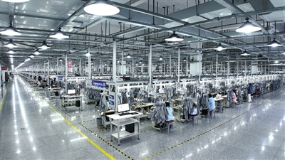 商水县阿尔本制衣先进的服装生产流水线。