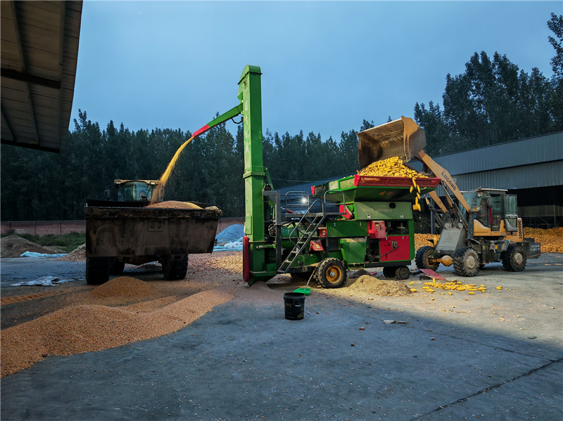 秋收期间,兰考县考城镇为农服务中心昼夜为农户烘干玉米。