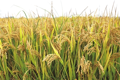 范县杨集乡庆丰农业科普示范园内沉甸甸的稻穗颗粒饱满。李博 摄