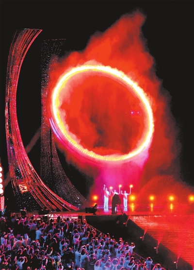 引天之光,燃海之火。沉睡亿万年的“深海之冰”化作跃动的“同心之火”,载人飞行器载着火炬翱翔于湾区天际。粤港澳三地健儿共同点亮主火炬,“同心圆”辉映中国梦,华夏儿女并肩携手,共赴未来。