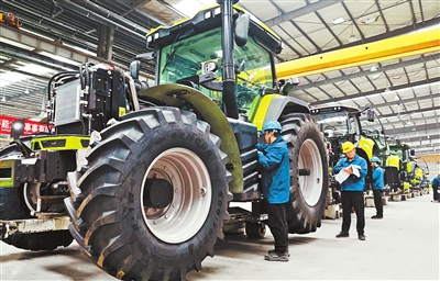 11月3日,中联重科开封工业园大马力拖拉机车间,工人正在赶制订单。园区依托高端制造业产业带的区位优势,加快建设中原特色产业基地步伐,确保农业装备制造业在四季度跑出加速度。 本报记者 聂冬晗 摄